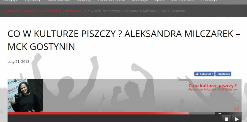Czemu reggae? Jakie atrakcje w najbliższych dniach czekają na fanów literatury i sztuki? Dla kogo zagra "Centrum uśmiechu?" O tym "Co w kulturze piszczy" na antenie płockiego Radiomixx opowiadała dyrektor Miejskiego Centrum Kultury w Gostyninie, Aleksandra Milczarek.