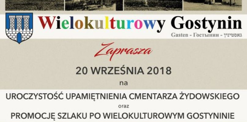 Wielokulturowy Gostynin zaprasza na uroczystość upamiętnienia cmentarza żydowskiego oraz promocję szlaku po wielokulturowym Gostyninie, która odbędzie się 20 września br.