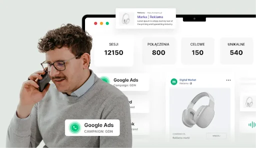 Wyobraź sobie, że sklep uruchomił promocję i otrzymał sto telefonów już pierwszego dnia. Taki sukces może być przypadkiem lub regularnością.W pierwszym przypadku marketer nie wie, które kampanie i słowa kluczowe przyniosły połączenia, ponieważ Google Analytics "nie widzi" tych konwersji offline. Powtórzenie wyniku jest możliwe tylko na chybił trafił.W drugim przypadku dokładnie wiadomo, która reklama przynosi połączenia ― aż do słowa kluczowego. Wtedy na pomoc przychodzi call tracking. Dzięki jego danym wiadomo, gdzie inwestować budżet, aby nadal generować jakościowe leady.Co to jest call trackingCall tracking to technologia, która łączy telefon wykonany na stronie firmy ze źródłem reklamowym, które sprowadziło użytkownika na tę stronę. Dzięki call tracking marketer, analityk czy właściciel firmy dokładnie wiedzą, które kampanie reklamowe są efektywne, ponieważ to one przynoszą telefoniczne połączenia od zainteresowanych osób.Korzyści z użycia call trackingu w reklamieJeśli dla twojego biznesu ważne są także rozmowy telefoniczne, zarówno jako pierwszy "punkt kontaktu", jak i kanał komunikacji, call tracking przyniesie ci szereg korzyści:możliwość dokładnego mierzenia i oceny wyników marketingu;prawidłowy podział budżetu marketingowego ― wyłączenie reklam, które marnują pieniądze, ale nie przynoszą wyników, i inwestowanie w skuteczne kampanie;wzrost konwersji i sprzedaży.