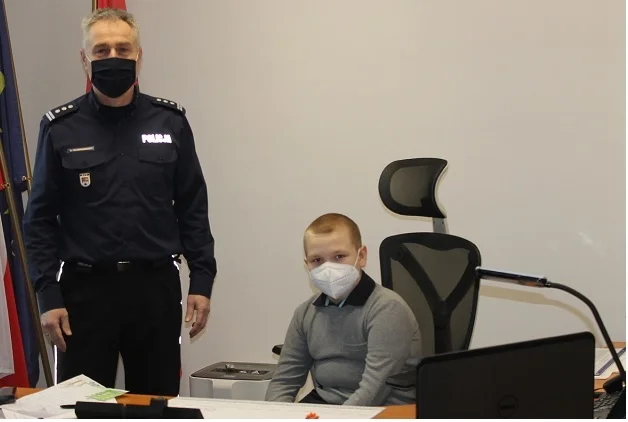 Chłopiec odwiedził miejską komendę na zaproszenie komendanta powiatowego, insp. Zbigniewa Włodkowskiego. To odpowiedź na podziękowania, które 11-latek przekazał na ręce policjantów.