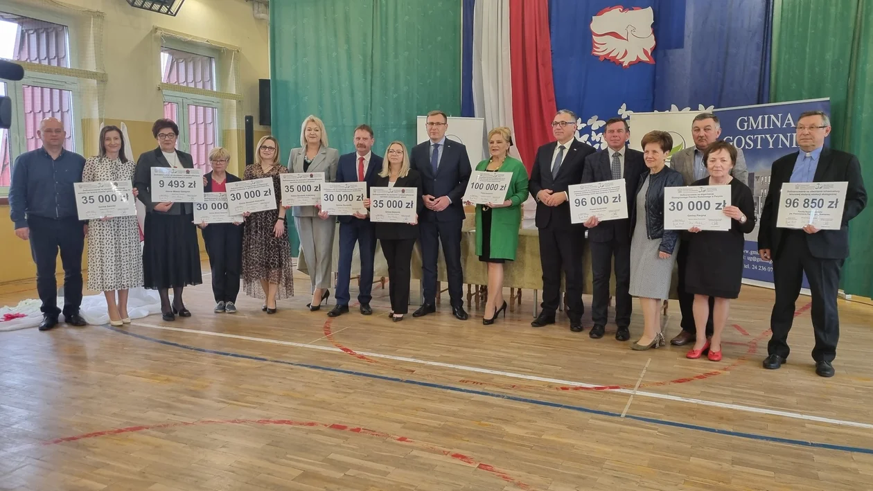 Samorządowcy otrzymali symboliczne czeki i podpisali umowy na realizację ekologicznych inwestycji. Za pozyskane środki zorganizowany zostanie m.in. piknik rodzinny, usunięty zostanie też azbest, z terenów mieszczących się w Gostyninie.