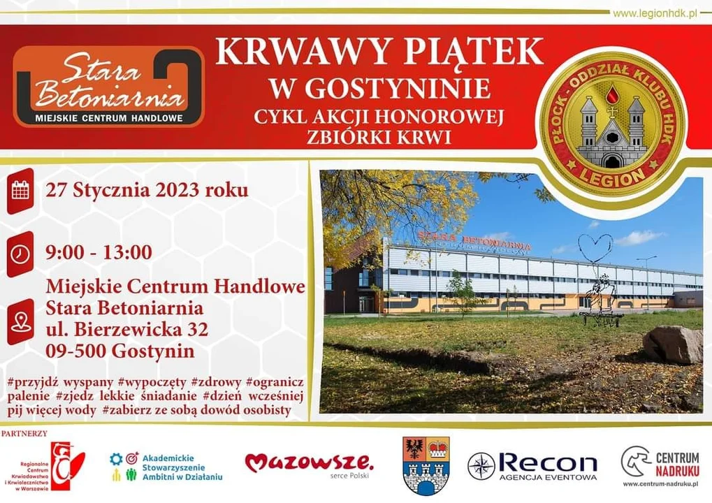 - Zachęcamy do wzięcia udziału w akcji honorowej zbiórki krwi, która odbędzie na terenie Miejskiego Centrum Handlowego Stara Betoniarnia. Liczymy na Państwa obecność i tak potrzebną pomoc. Do zobaczenia - czytamy na oficjalnym, facebookowym profilu centrum handlowego.