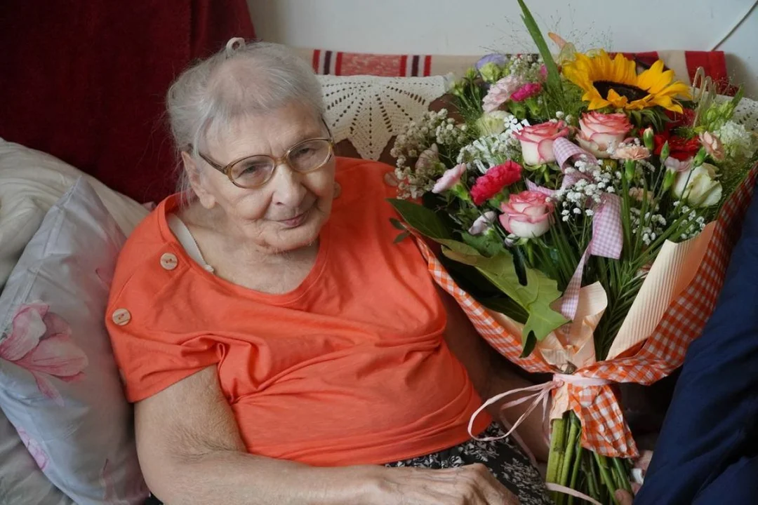 - Dostojnej jubilatce życzymy wielu kolejnych lat spędzonych w dobrym zdrowiu, radości, szczęściu, w otoczeniu rodziny i najbliższych – mówił burmistrz Kalinowski, wręczając kwiaty i prezent.