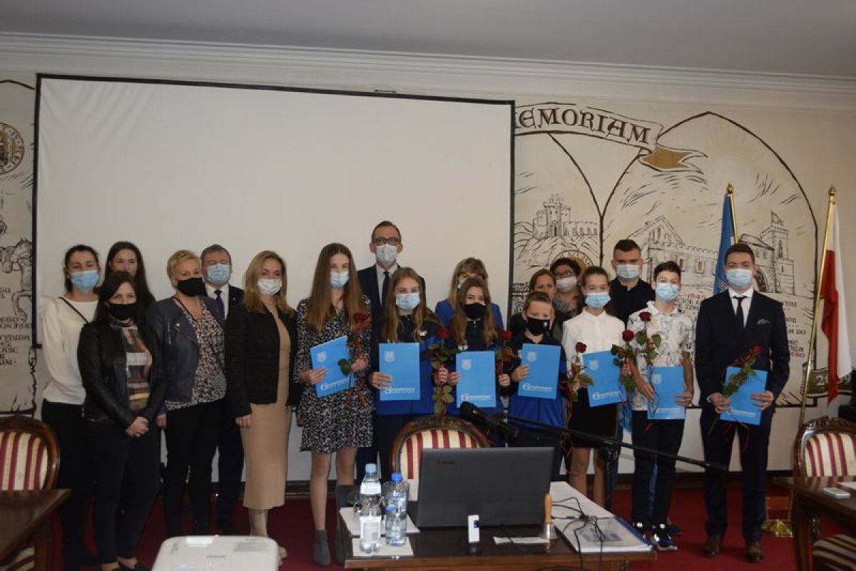 Wyróżnienia, dyplomy i stypendia wręczono w czwartek, 28 października. Dziewięciu najzdolniejszych uczniów otrzymało je z rąk burmistrza Pawła Kalinowskiego i Andrzeja Redera, przewodniczącego rajców oraz Anny Majchrzak, radnej miejskiej.
