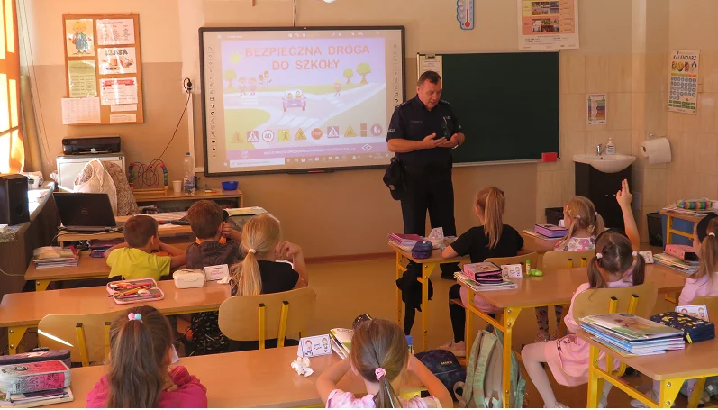 Uczniowie poznali wskazówki, jak się poruszać drogą, poboczem aby bezpiecznie dotrzeć do celu. Policjanci mówili o potrzebie noszenia elementów odblaskowych i wskazali jak ważne jest ich noszenie zwłaszcza o zmroku i na drogach nieoświetlonych. Funkcjonariusze wytłumaczyli również w jaki sposób bezpiecznie przechodzić przez ulicę korzystając z przejść dla pieszych.