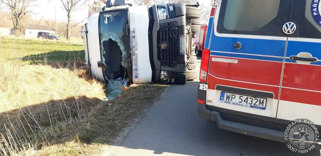 Opisywane zdarzenie działo się w poniedziałek, 14 marca, około godziny 11:00 w miejscowości Huta Zaborowska (gmina Gostynin) . Jak podaje Gostynin 998, to wtedy do SKKP PSP Gostynin wpłynęło zgłoszenie o przewróconej ciężarówce z naczepą, która wiozła żywy drób.