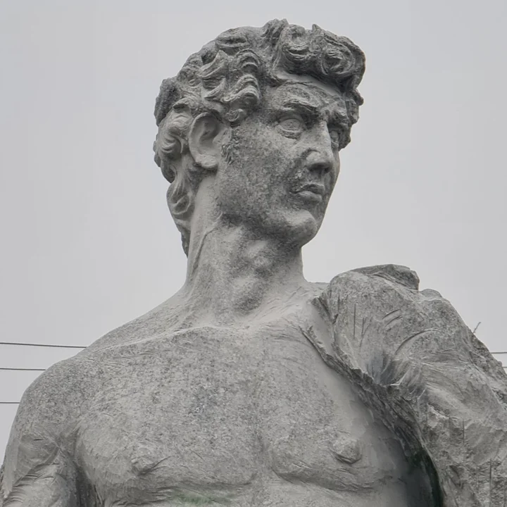 Postać jest wykonywana w jednym kamieniu. Dawid pana Tadeusza ma 4,70 metra - bez cokołu. Kamień, z którego powstaje ważył 40 ton i został wydobyty z 50 metrów w głąb ziemi.