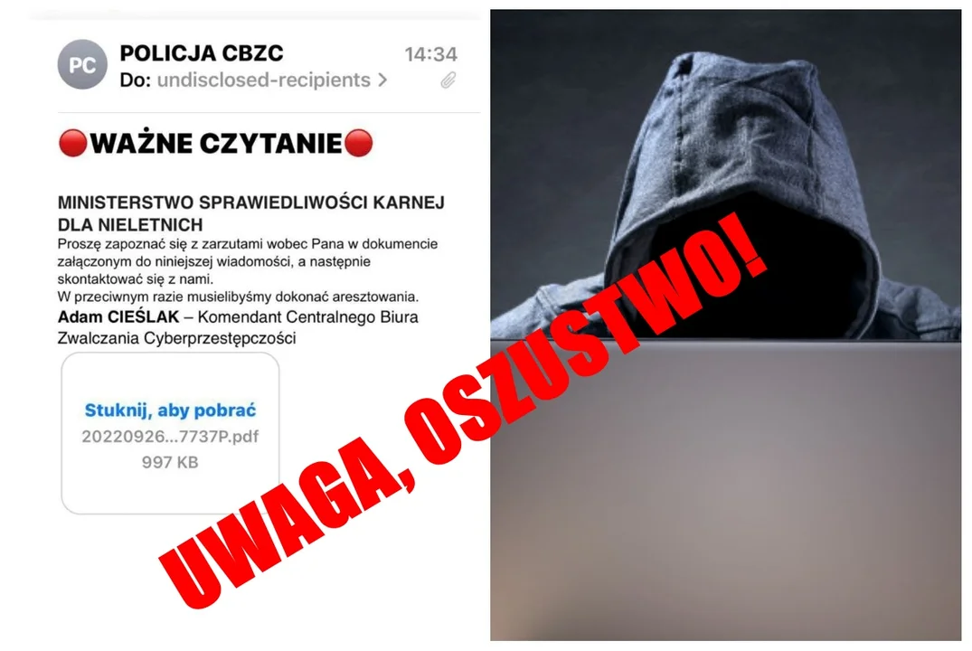 Oszuści wysyłają maile wykorzystując wizerunek biura, a także policji. W takiej wiadomości często podpisują się jako Adam Cieślak, komendant Centralnego Biura Zwalczania Cyberprzestępczości.
