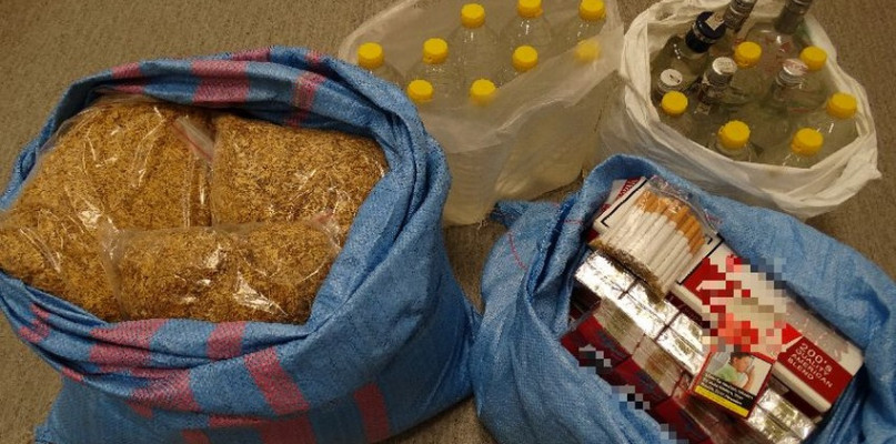 Z końcem ubiegłego tygodnia policjanci Zespołu dw. z Przestępczością Gospodarczą gostynińskiej policji uzyskali informacje o przechowywaniu wyrobów tytoniowych i alkoholu bez polskich znaków akcyzy na terenie gminy Gostynin. Jak się okazało 94-letni mężczyzna w pomieszczeniach domowych i gospodarczych przechowywał nielegalne towary. Funkcjonariusze zabezpieczyli ponad 22 litry alkoholu niewiadomego pochodzenia, 9 kg krajanki i 1820 sztuk papierosów bez polskich znaków akcyzy.