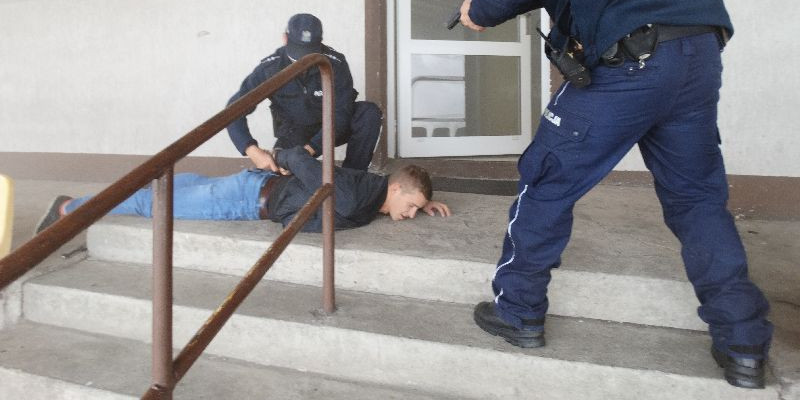 Mundurowi natychmiast podejmują negocjację z porywaczami. Poprzez zastosowanie elementu zaskoczenia, przy użyciu zasłony dymnej, petard hukowych i strzałów ostrzegawczych z broni palnej, zatrzymują dwóch mężczyzn i doprowadzają do radiowozu. W tym czasie do akcji włączają się strażacy i ratownicy medyczni.
