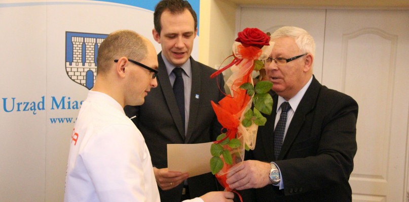 Dziś w sali konferencyjnej Urzędu Miasta burmistrz Paweł Kalinowski oraz przewodniczący rady miejskiej Andrzej Robacki wręczyli nagrodę Kamilowi Fabisiakowi za osiągnięcie wysokich wyników sportowych w ubiegłym roku.