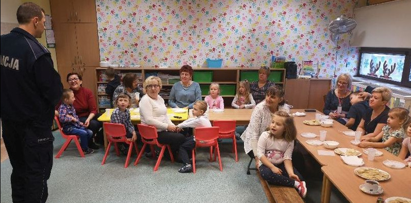 Wczoraj (21.01.) dzielnicowy odwiedził seniorów, którzy przybyli do Akademii Przedszkolaka, na uroczyste obchody ich święta przygotowane przez dzieci. Podczas spotkania z okazji Dnia Babci i Dziadka policjant oprócz złożenia seniorom życzeń rozmawiał z nimi o bezpieczeństwie. Poruszana była tematyka oszustw na tzw. „wnuczka” oraz bezpieczeństwa w ruchu drogowym. Na zakończenie spotkania dzielnicowy wręczył upominek w postaci niebieskich serduszek – rekwizytów kampanii „Kochasz? Powiedz STOP Wariatom Drogowym”, które mają przypominać o tym, że osoby go kochające czekają na jego bezpieczny powrót do domu