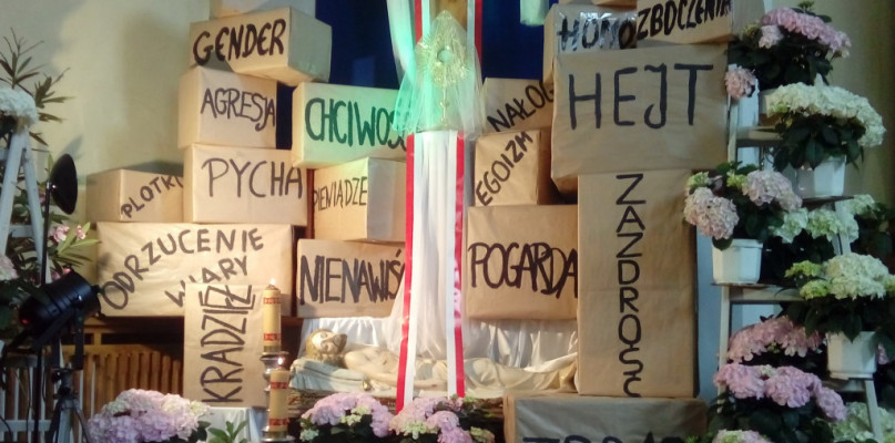 Niemal tradycyjnie dodatkowe przesłanie przy Grobie Pańskim zobaczyli parafianie z płockiego kościoła św. Dominika na Górkach. O sprawie pisze portalplock.pl. Nad grobem Chrystusa jest wypisanych kilkanaście haseł, wśród których można znaleźć "hejt", "LGBT" czy "gender". Czy tym razem proboszcz posunął się za daleko?