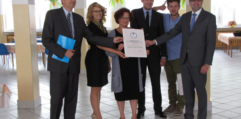 Dyrektor gimnazjum Robert Pypkowski w rozmowie z Magdaleną Sułek-Domańska, Dyrektor ds. Komunikacji ENERIS Surowce S.A. opowiedział o wyróżnieniach szkolnych za zbiórki metalu, szkła oraz makulatury przez ostatnie 5 lat oraz o pomyśle w ramach projektu dotyczącego utworzenia elektrowni wiatrowej.
