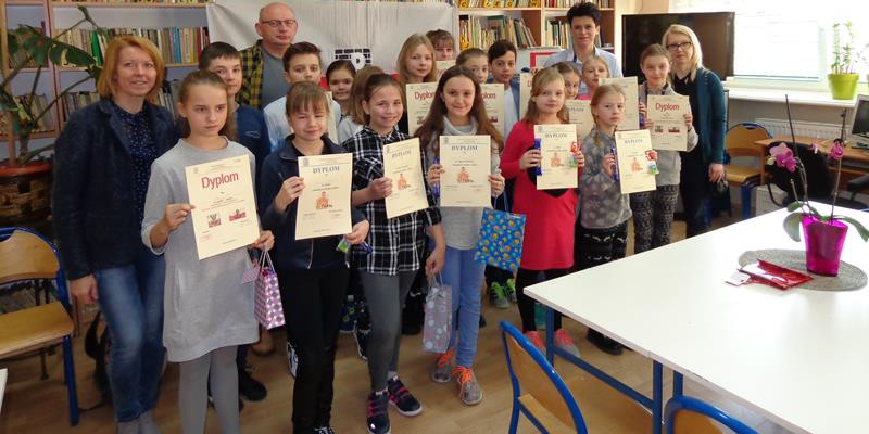 Uczniowie klas IV wyróżnieni w konkursie wiedzy o Szkole Podstawowej nr 1 im. Armii Krajowej w Gostyninie: