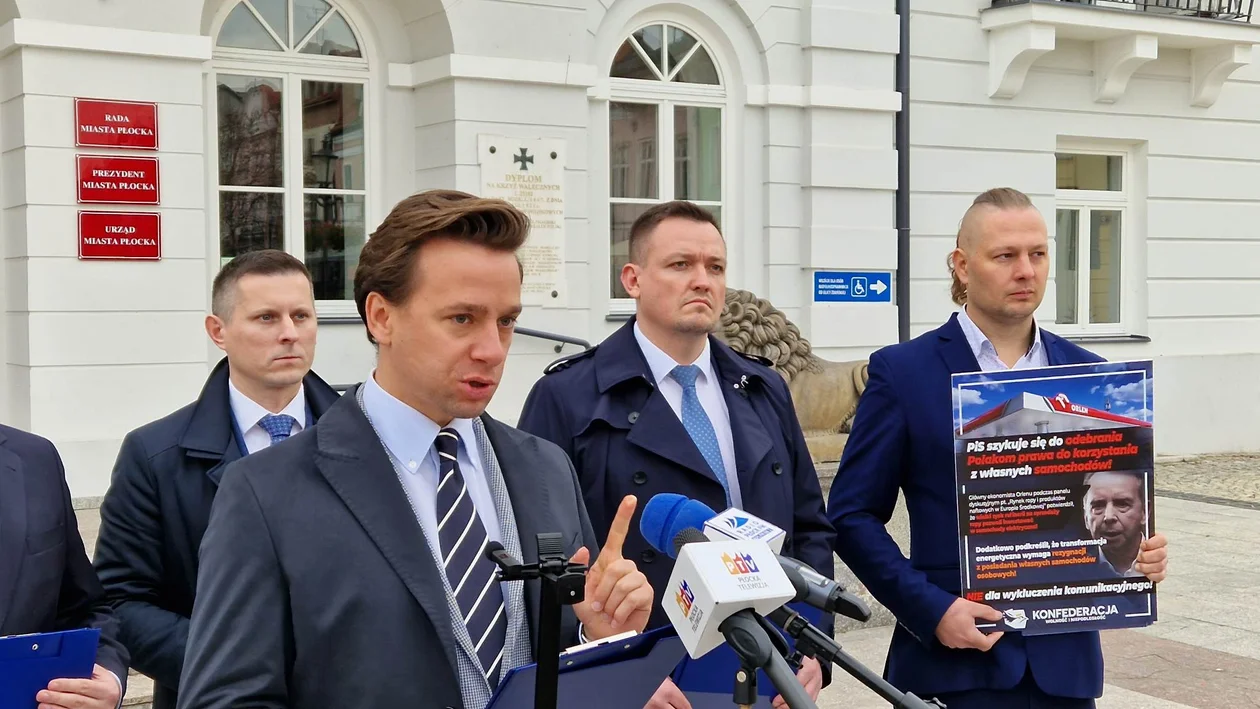 - Co z tysiącami miejsc pracy w samym Płocku? Czy Płock będzie drugim Detroit? To amerykańskie miasto zapłaciło za to, że wyniesiono z niego przemysł samochodowy. Czy ktoś się zastanawia, że płocczanie zapłacą za te wszystkie zmiany? Żeby nie było że to tylko my, Konfederacja, partia która w wielu kwestiach nie zgadza się z polityką rządu i UE, o tym mówimy przytoczę słowa unijnego komisarza ds. rynku wewnętrznego, Francuza, pana Thierry Breton, który ostrzega przed skutkami wprowadzenia zakazu sprzedaży aut spalinowych w Unii Europejskiej. Ten eurokrata powiedział, że może to skutkować gigantycznymi zakłóceniami w gospodarce europejskiej - grzmiał Paweł Usiądek, lider Konfederacji w okręgu płocko-ciechanowskim.