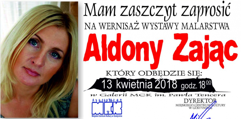 Wernisaż wystawy malarstwa Aldony Zając odbędzie się w Galerii im. Pawła Tencera Miejskiego Centrum Kultury w Gostyninie w piątek 13 kwietnia o godzinie 18.00.