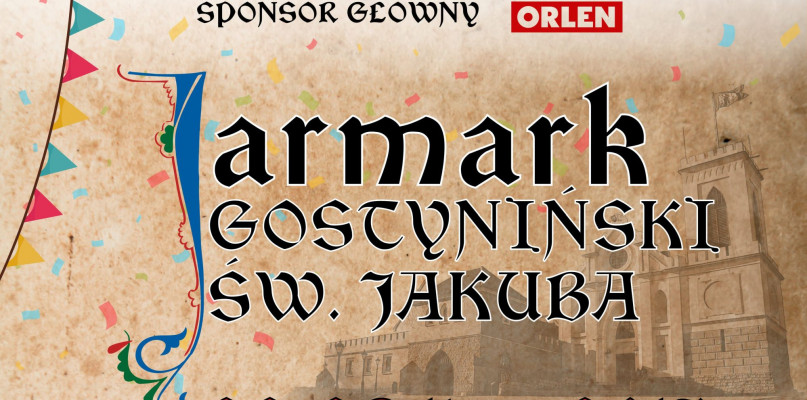 Jarmark św. Jakuba, to największe wydarzenie kulturalne Gostynina. Tegoroczne miejskie święto zaplanowano tradycyjnie już na terenie zamku i podzamcza w dniach 22 i 23 lipca. Przez ten lipcowy weekend zamek rozbrzmiewać będzie dobrą muzyką zapewniając doskonałą zabawę. Głównym sponsorem III Jarmarku św. Jakuba w Gostyninie jest PKN ORLEN.