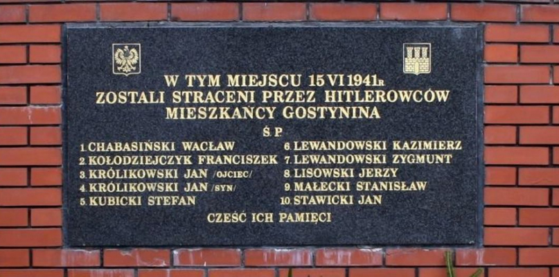 Tablica upamiętniająca pamięć dziesięciu mieszkańców Gostynina rozstrzelanych 15 czerwca 1941 roku została zdjęta z elewacji nieruchomości przy ulicy Floriańskiej 11 z powodu rozpoczęcia prac remontowych. Właściciel posesji zobowiązał się (w formie pisemnej), że umieści tablicę na dawnym miejscu, gdy tylko prace remontowe dobiegną końca. Tymczasem chociaż remont dawno dobiegł końca, tablica wciąż nie wróciła na swoje miejsce.