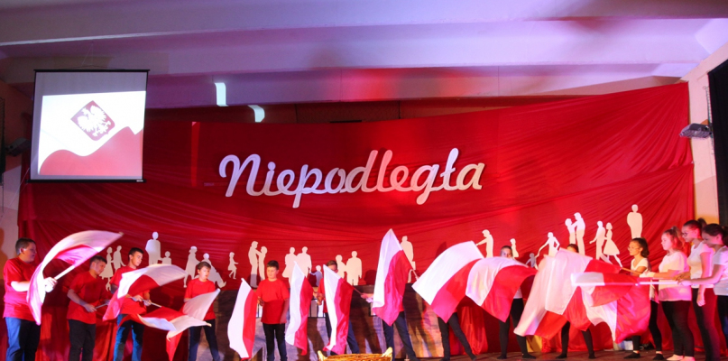 11 listopada, zamieniona w biało - czerwoną flagę, Szkoła Podstawowa im. Janusza Kusocińskiego w Pacynie przywitała ponad 300 osób, by wspólnie świętować 100-tną rocznicę odzyskania niepodległości.