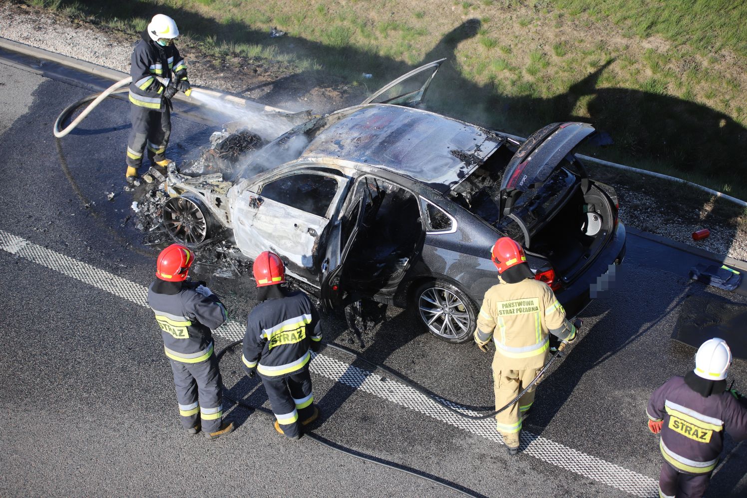 Ogniem objęty był samochód osobowy marki Volvo na krakowskich numerach rejestracyjnych. Samochód jechał pasem w kierunku Gdańska.